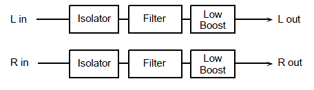 ISOLATOR にフィルターを追加したものです。アイソレーターは音量をカットする度合いが非常に大きなイコライザーで、各音域の音量をカットすることにより特殊な効果が得られます。