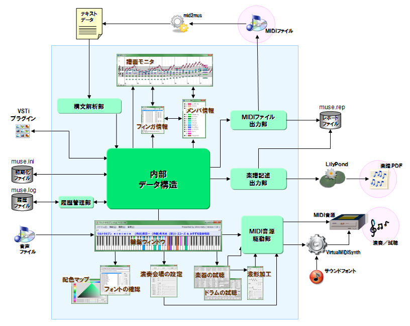 ※ 開発後記や加藤一郎氏の Muse の記事,MuseWorldのWHAT'S NEWなどを参考に再構成したものである。