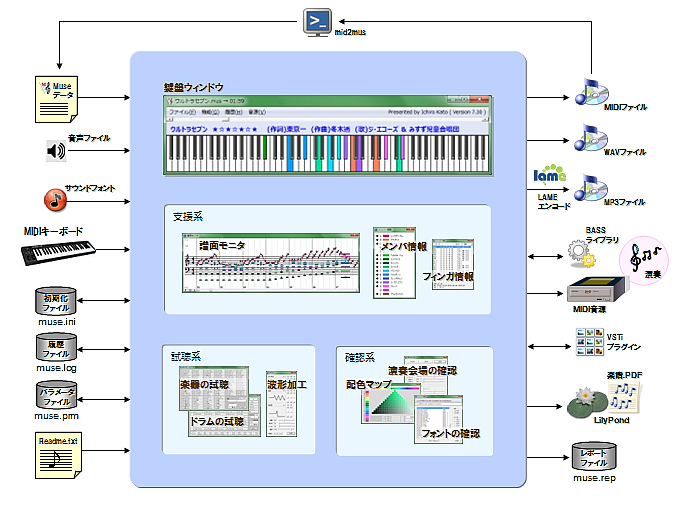 ※ 開発後記や加藤一郎氏の Muse の記事,MuseWorldのWHAT'S NEWなどを参考に再構成したものである。